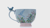 Features: A large teacup featuring a cute ceramic Bird perched on the handle. The exterior of the cup features a lovely foliage pattern with swooping swallows, finished with gold details for added luxury. The perfect gift for gardeners and nature lovers alike! Packaging: It is ready for gifting since it comes packaged in a beautifully printed box with gold details.